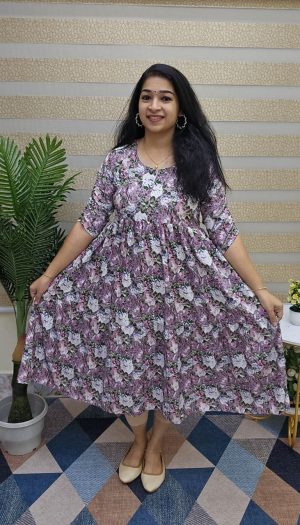 Normal Cum Feeding/Full Openable/Collar/Frock -Dusty Pink