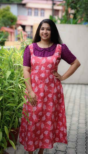 Maternity/Feeding/Floral/Hakoba/Frock- Peach