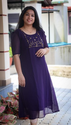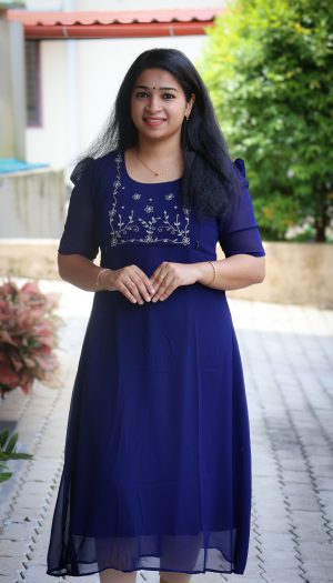 Feeding/Handwork/Party Wear/Frock-Navy Blue