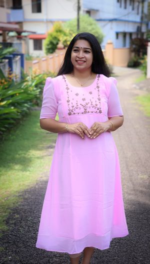 Feeding/Handwork/Party Wear/Frock-Baby Pink