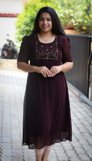 Feeding/Handwork/Party Wear/Frock-Dark Wine