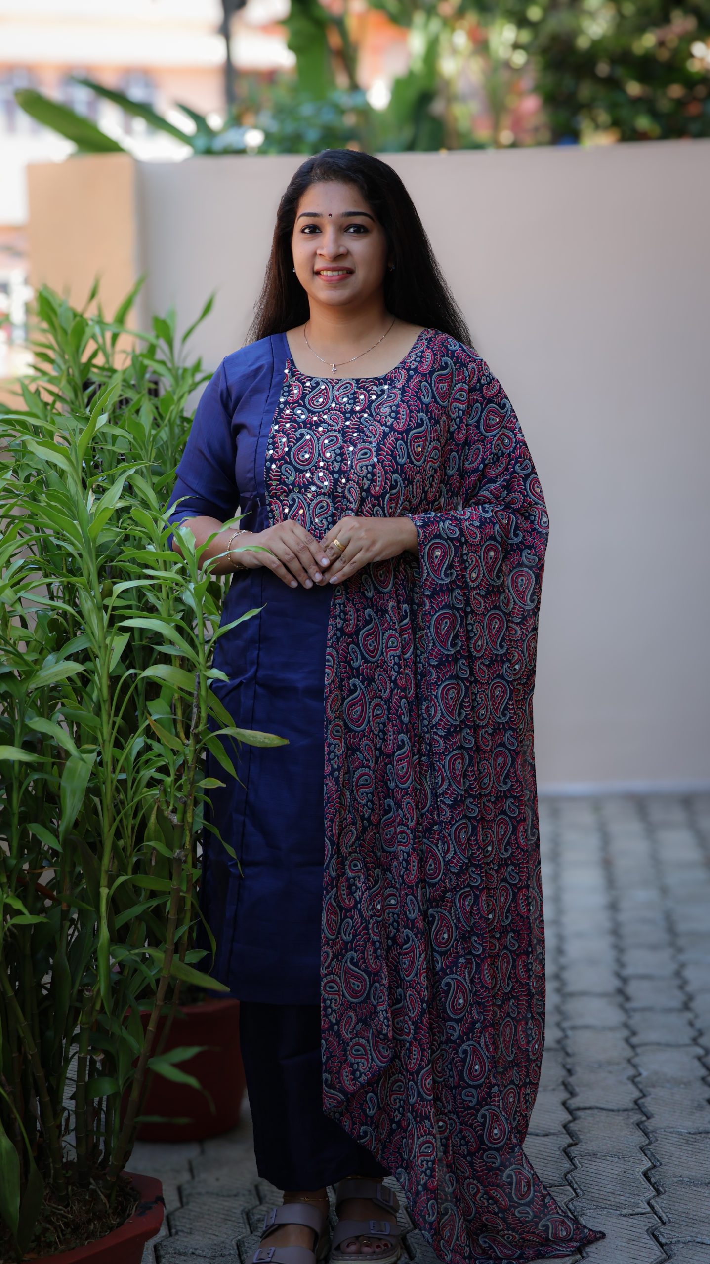 – Highlights-  Ajrakh print & mirror glass work on yoke portion & shawl