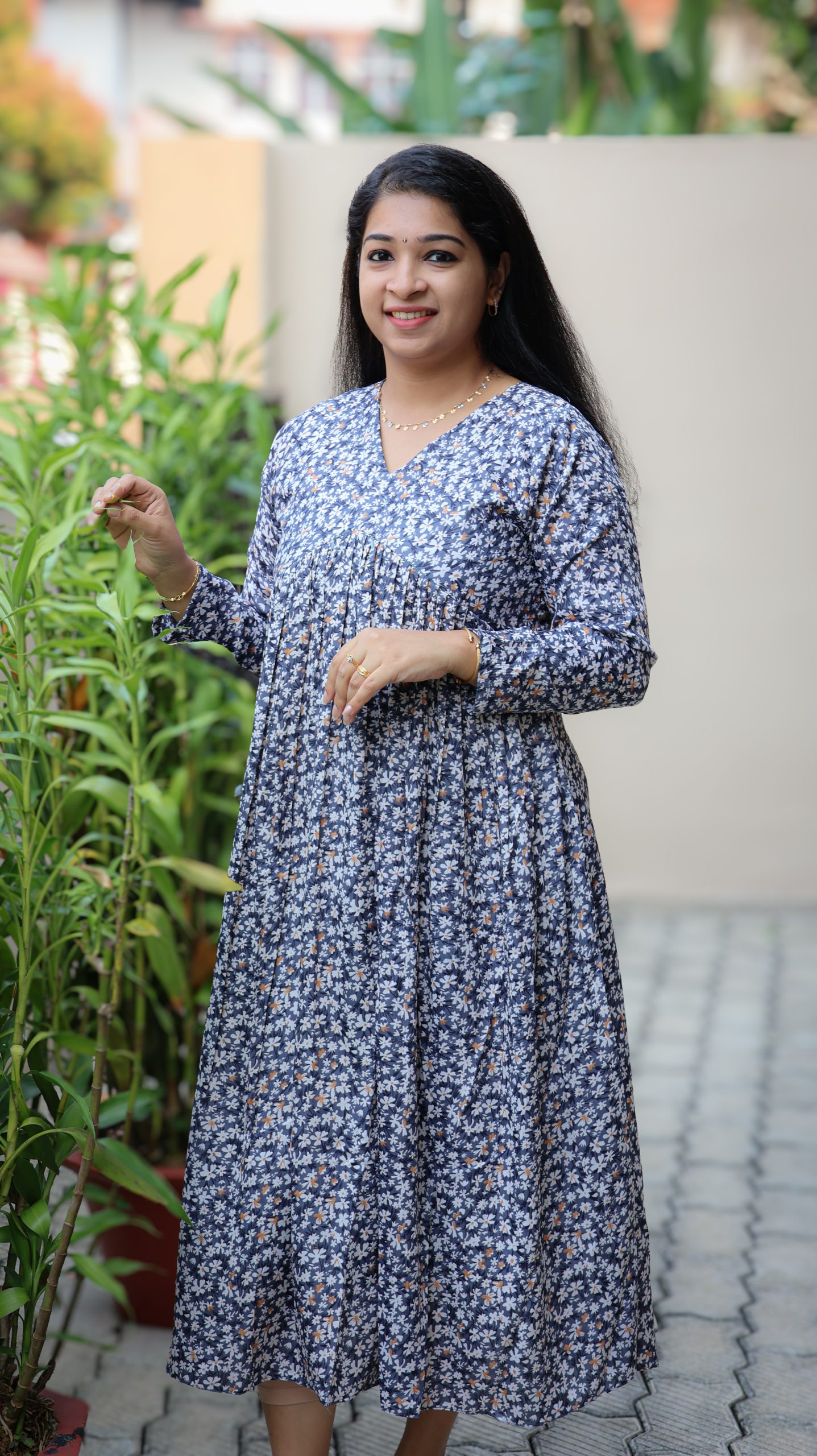 – Highlights- Small floral print throughout the top & V Neck.