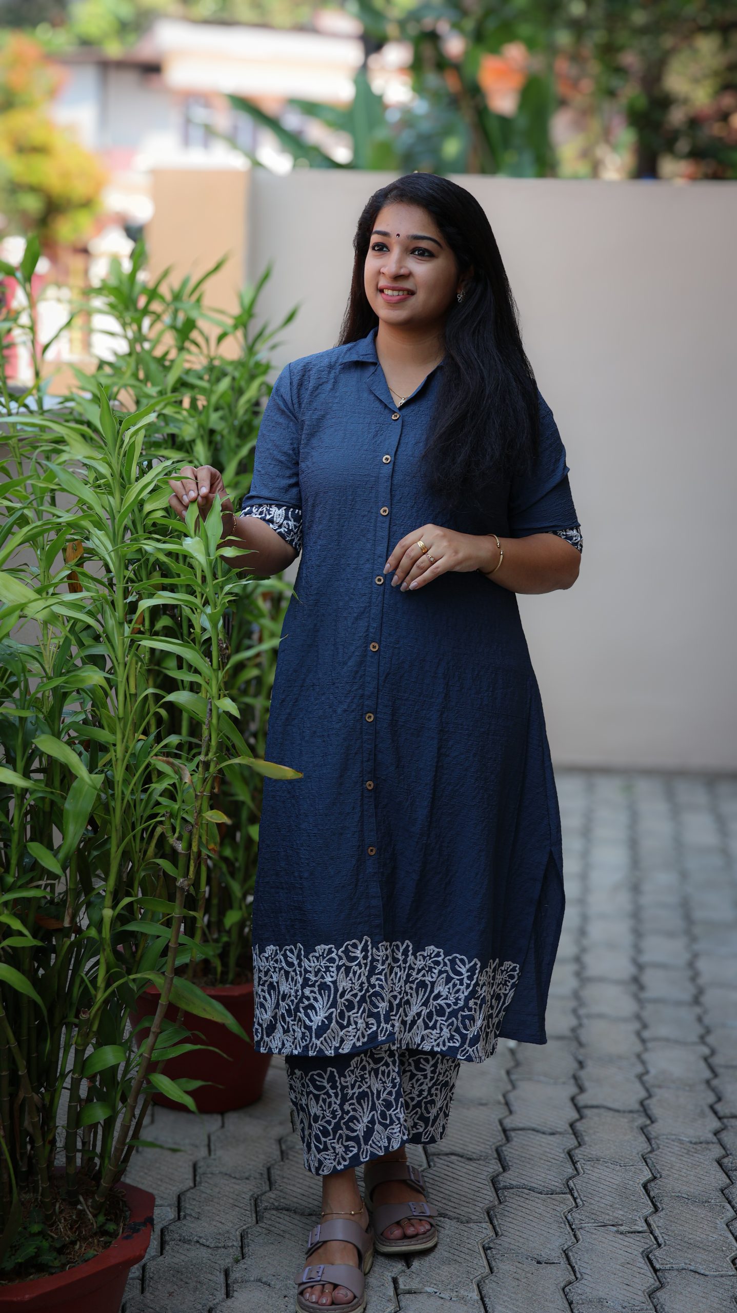 – Highlights: Thread Embroidery at end of top , bottom & sleeves .Collar neck. First two button openable