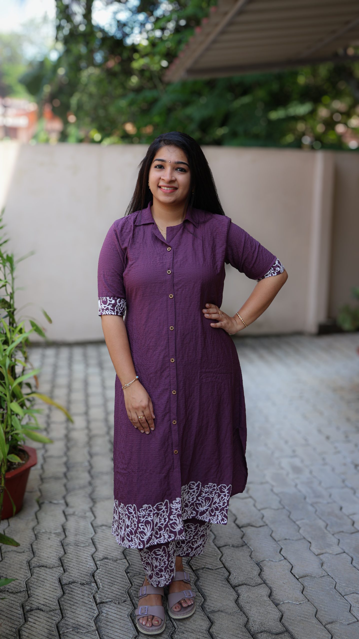 – Highlights: Thread Embroidery at end of top , bottom & sleeves .Collar neck. First two button openable