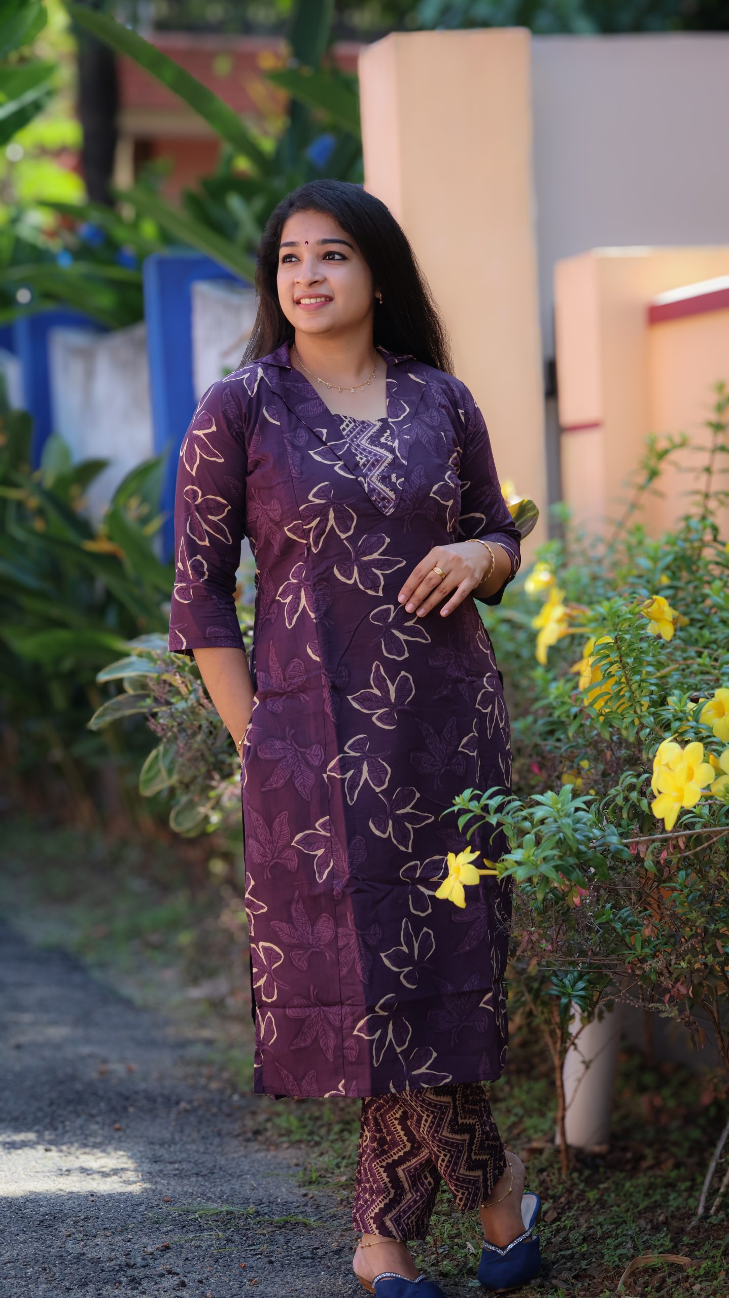 -Highlights :Printed Top & Bottom. Lapel collar neck.