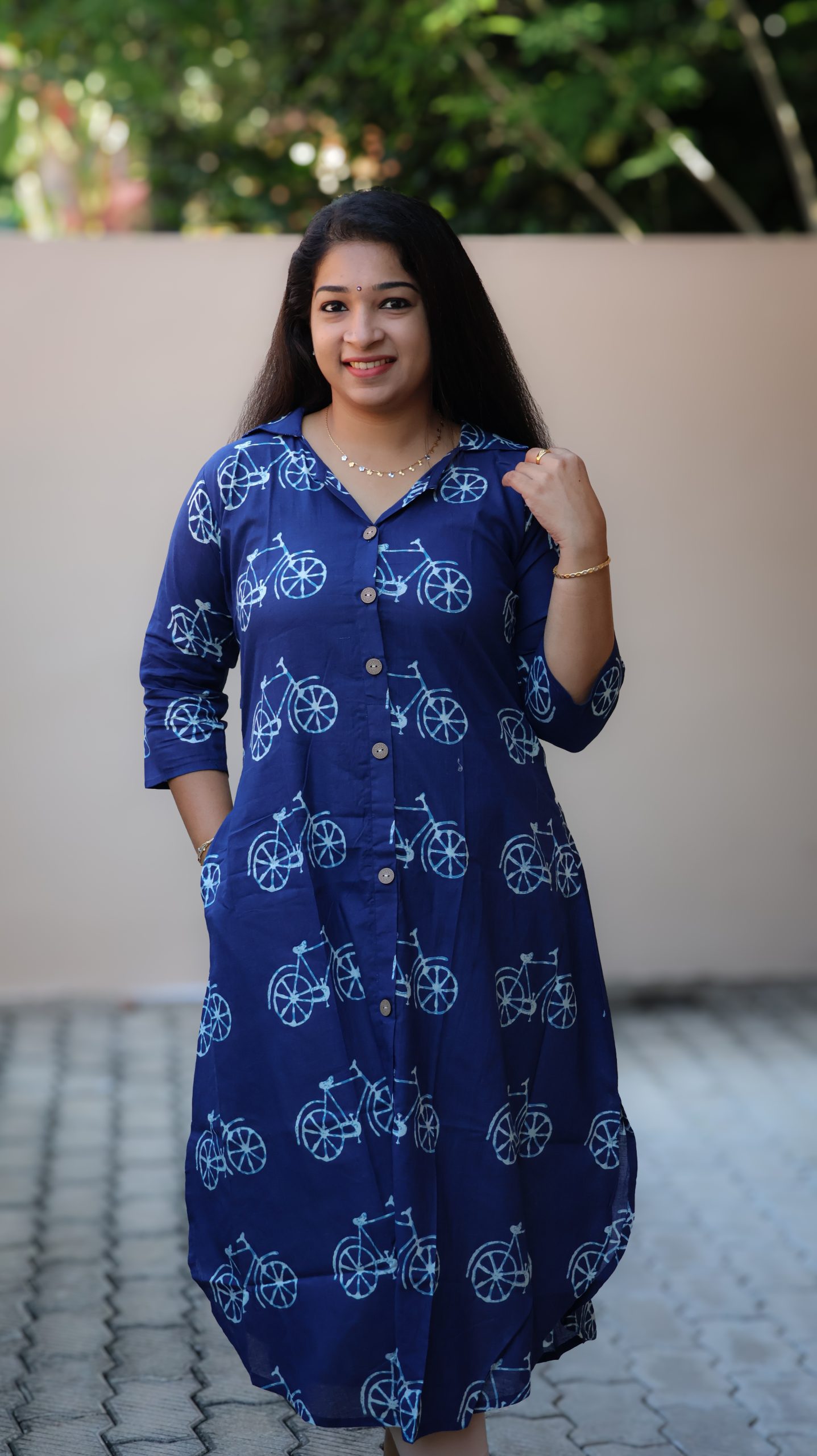 – Highlights- Cycle print throughout the body. First three button openable. Flap collar neck
