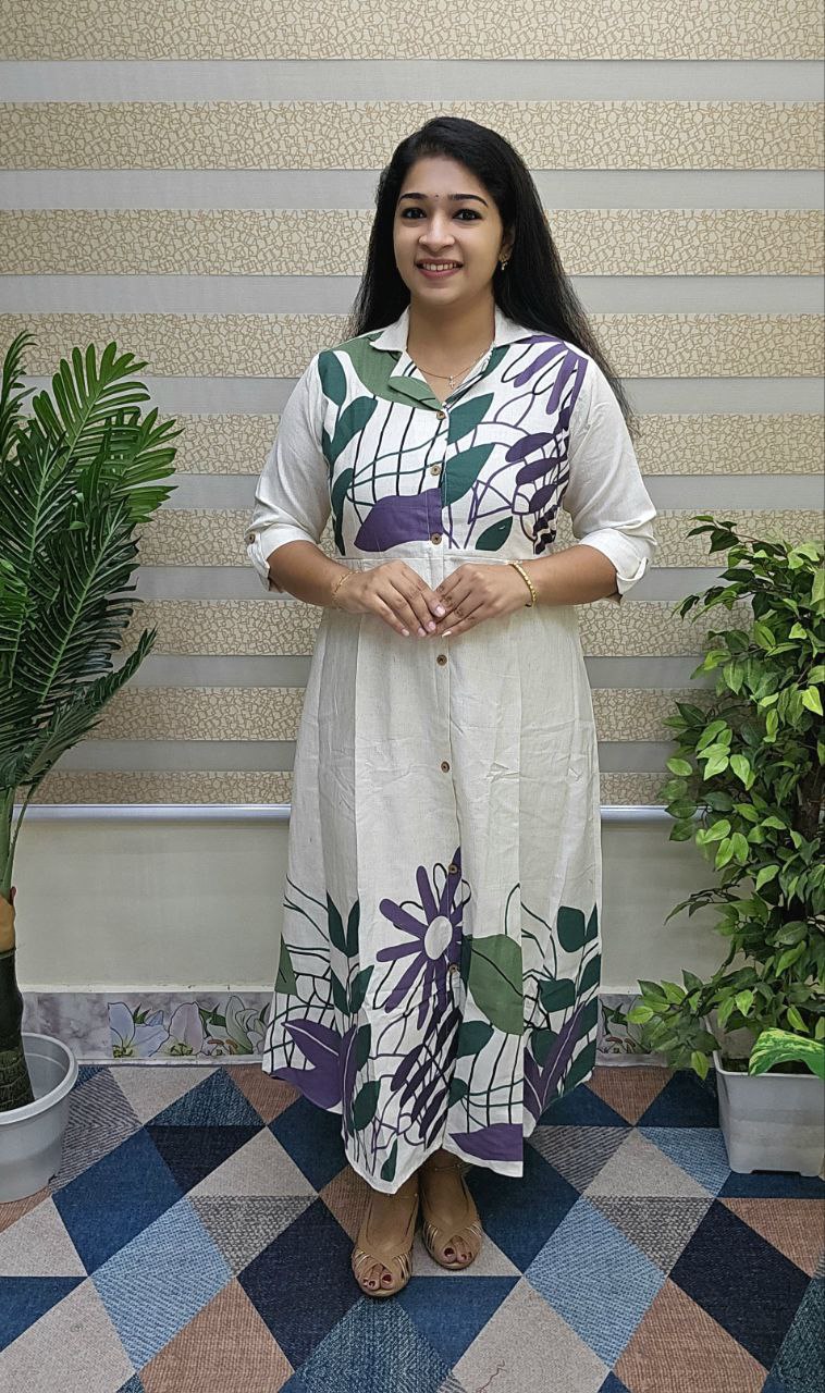-Highlights : Floral print on Yoke & bottom portion. Lapel collar neck. First three button openable