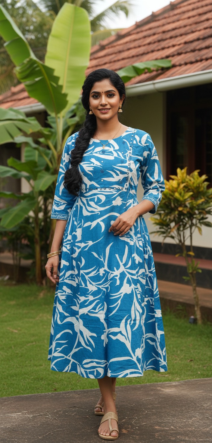Cotton/Mirror Work/Feeding/Frock- Blue