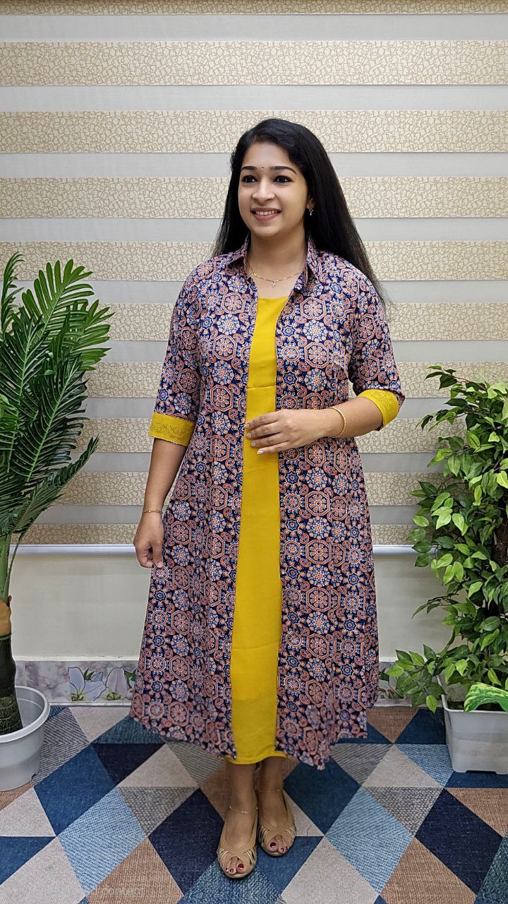– Highlights- Ajrakh print on jacket ,back portion & Sleeves and Collar Neck.