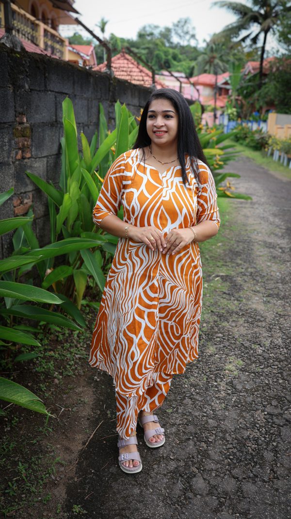-Highlights : Printed lines throughout the Top & Bottom. Elastic bottom