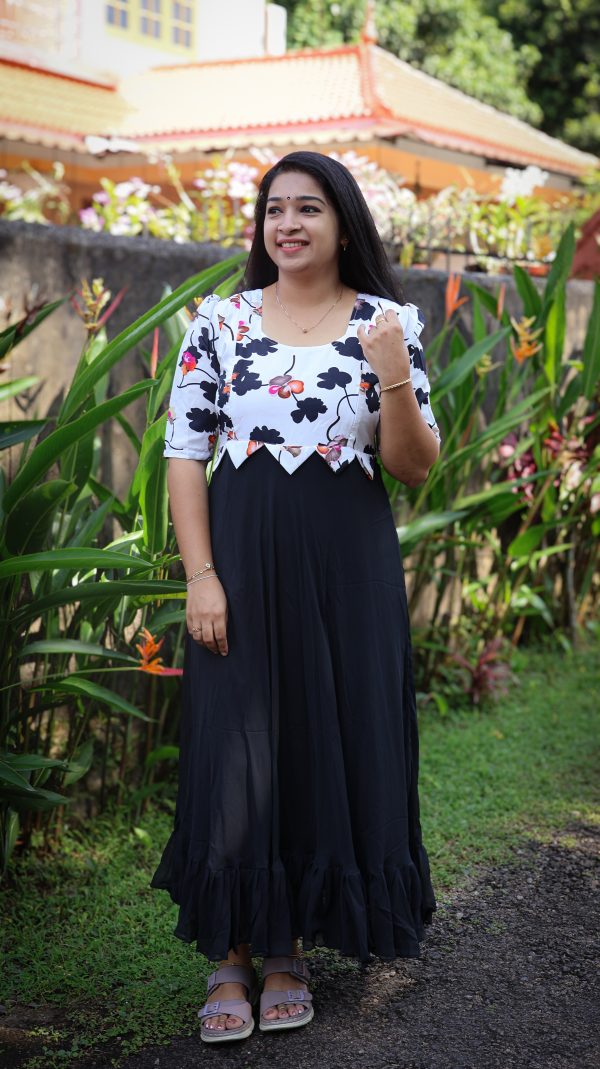 – Highlights: Heavy Flared . Floral print on yoke portion & sleeves