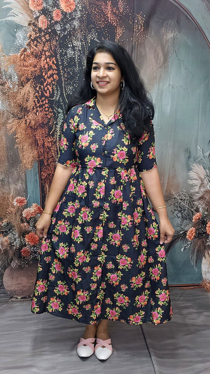 – Highlights: Digital floral print throughout the body. Flap collar neck.