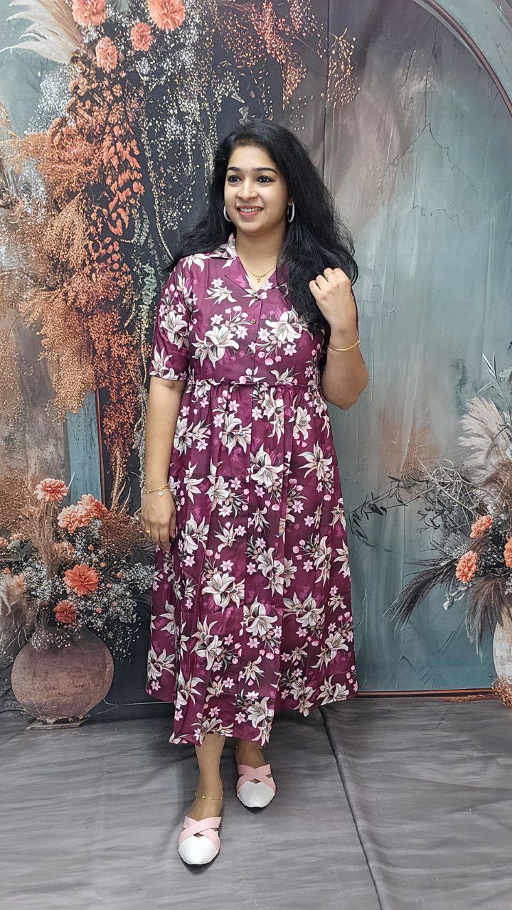 – Highlights: Digital floral print throughout the body. Flap collar neck. First three button openable
