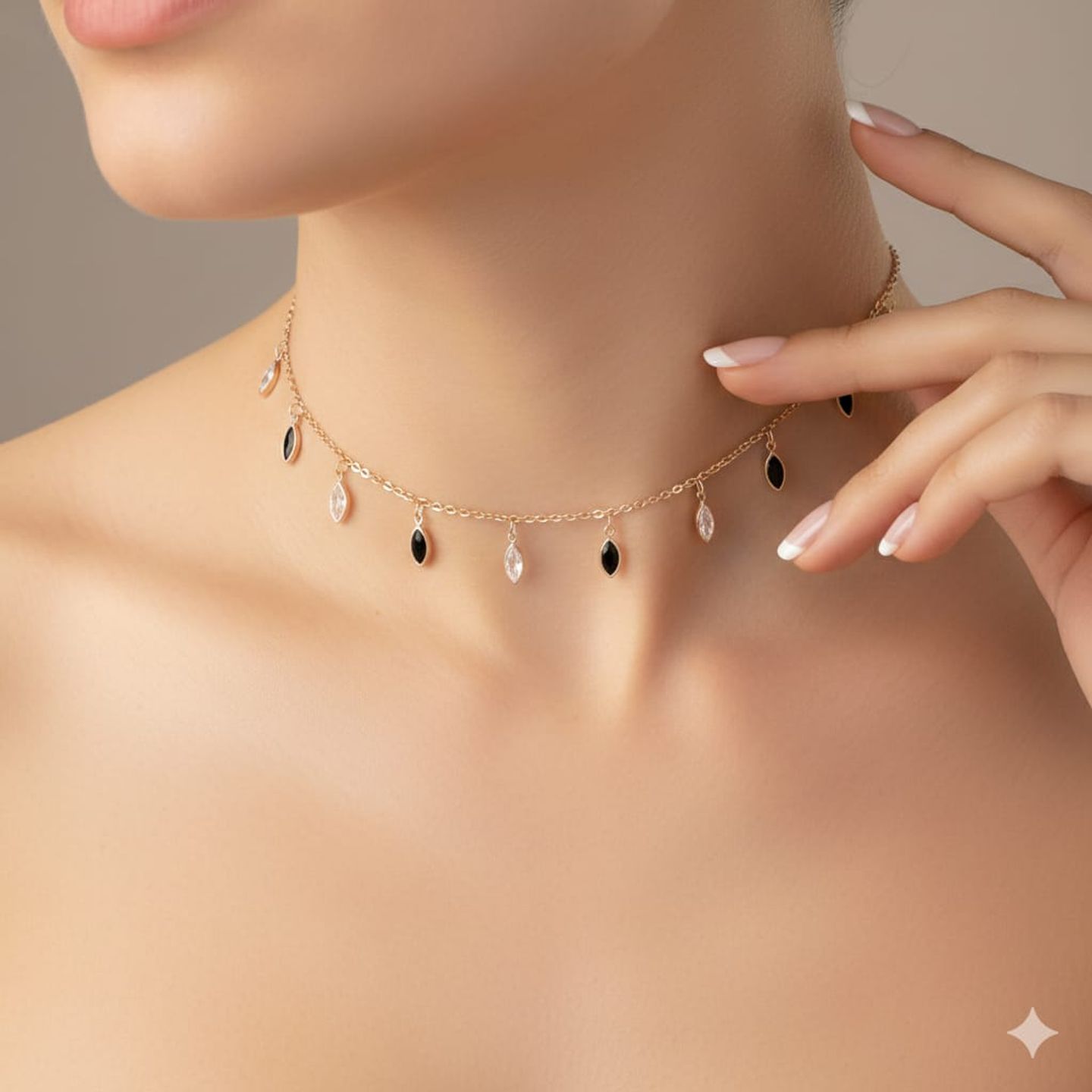 Gold/Daily Wear/ Droplets Choker -Black Stone