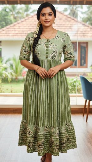 Maternity/Feeding /Checks Model Frock-Pea Green