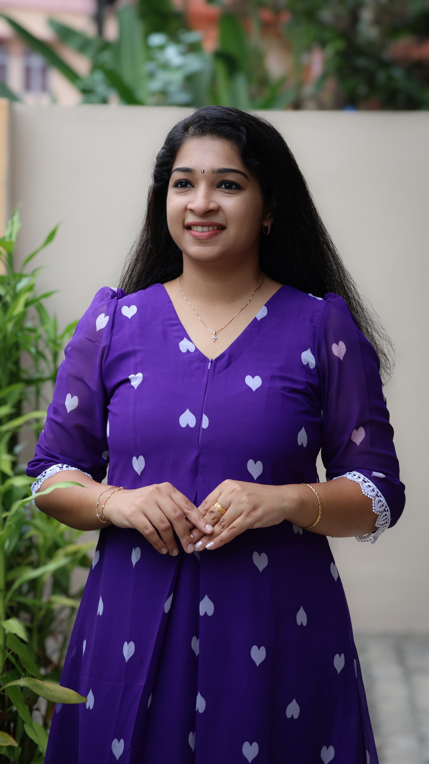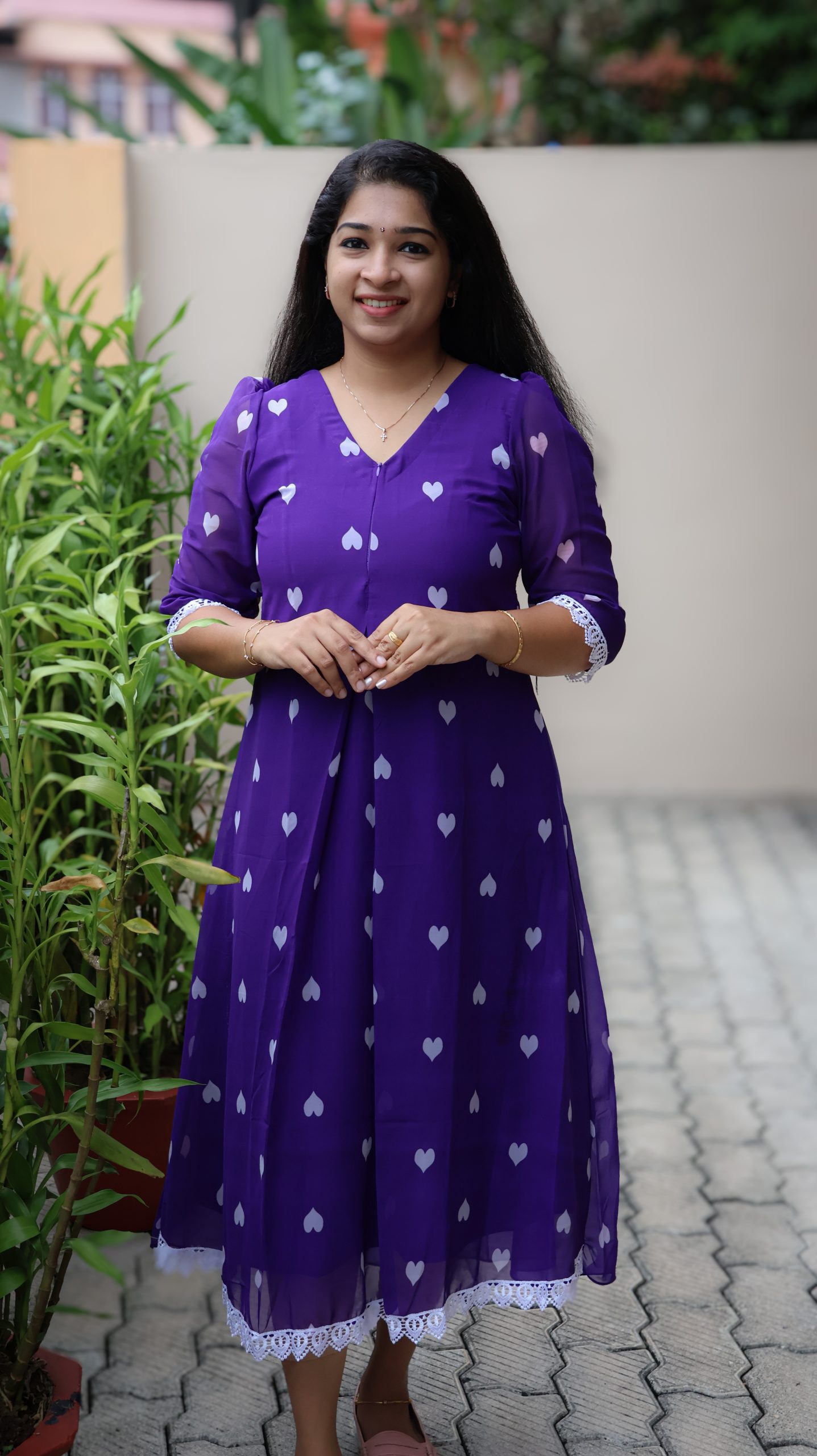 – Highlights- Heart shape  print Throughout the body & V Neck. Inverted pleat on center portion.