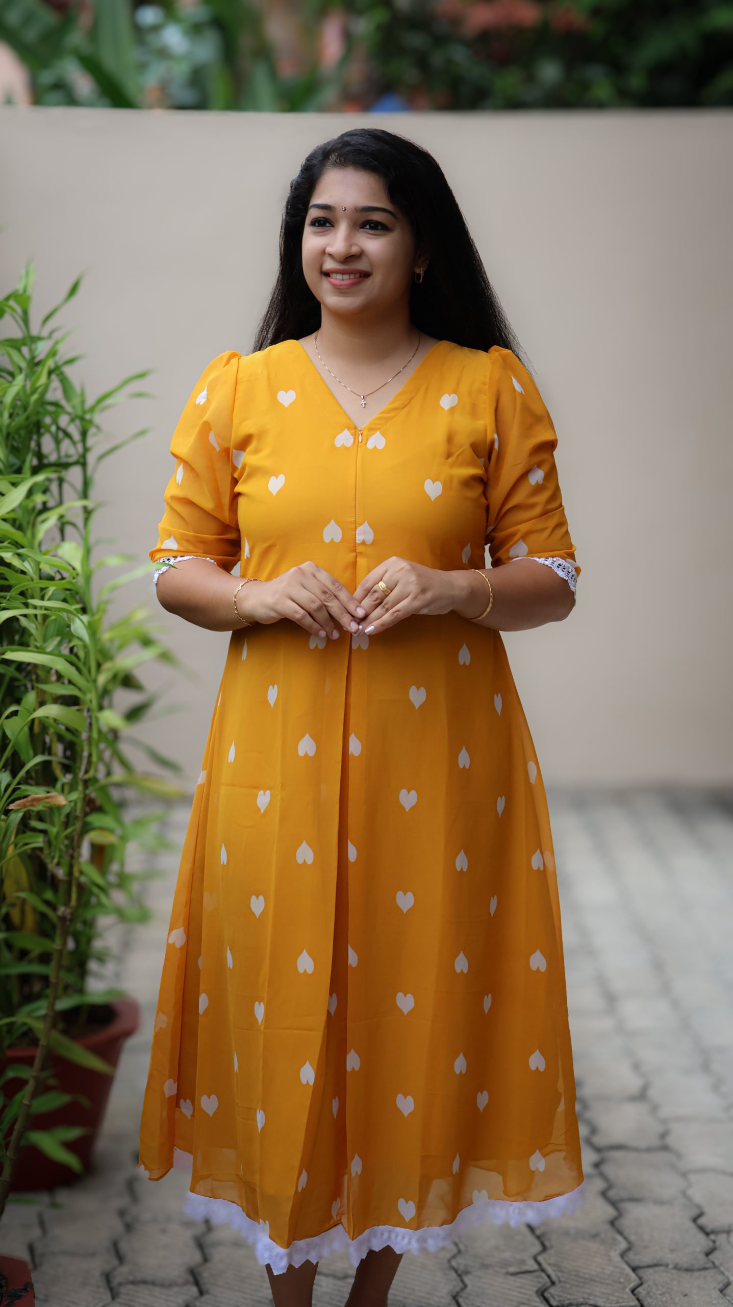 – Highlights- Heart shape  print Throughout the body & V Neck. Inverted pleat on center portion.