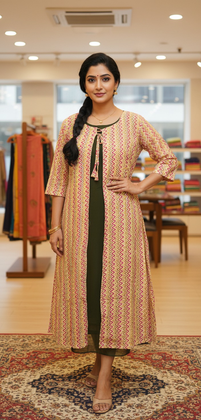 – Sleeves Pattern: 3/4 th sleeves(Jacket) Sleeveless (Inner Dress)