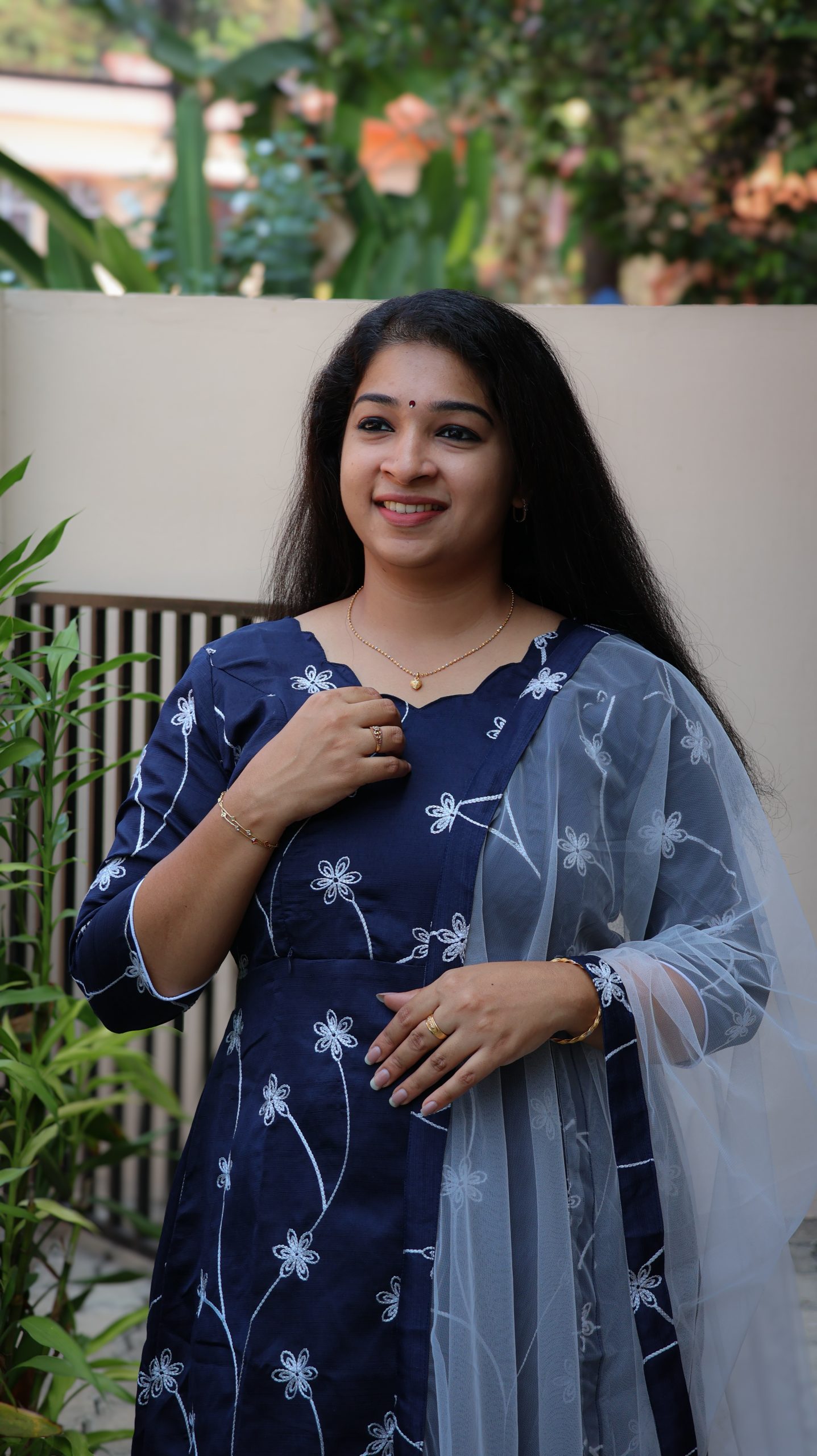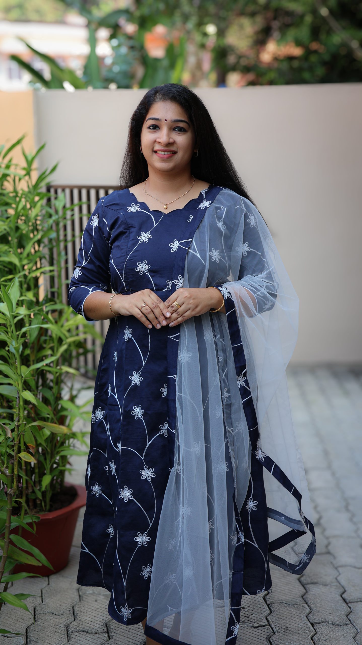 – Highlights: Embroidery work  throughout the top & Net dupatta. flower shaped neck