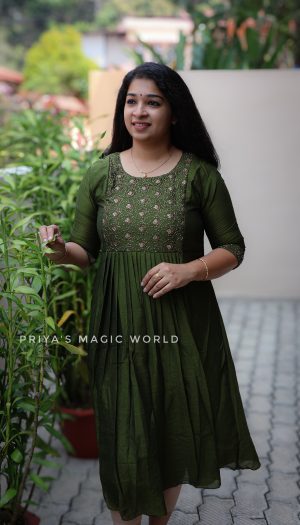 Gown cum Dupatta/Feeding- Dark Green
