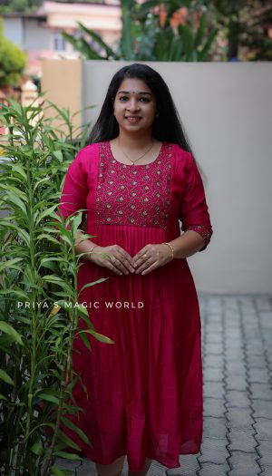 Gown cum Dupatta/Feeding- Maroon